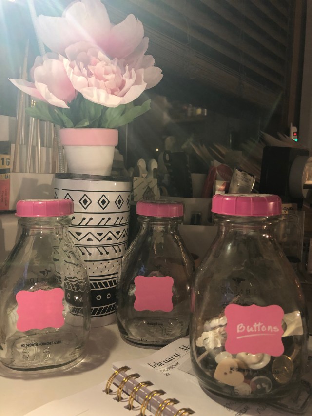 Today’s flip is turning glass milk bottles into storage. This one is really easy! After ensuring your bottles are clean, simply create a circle with your craft punch or die cut to cover the lid and create a label for the front to show what the contents are. For mine pictured below I used a second craft punch in the shape of a label. There are also many ready-made labels on the market that are super cute!